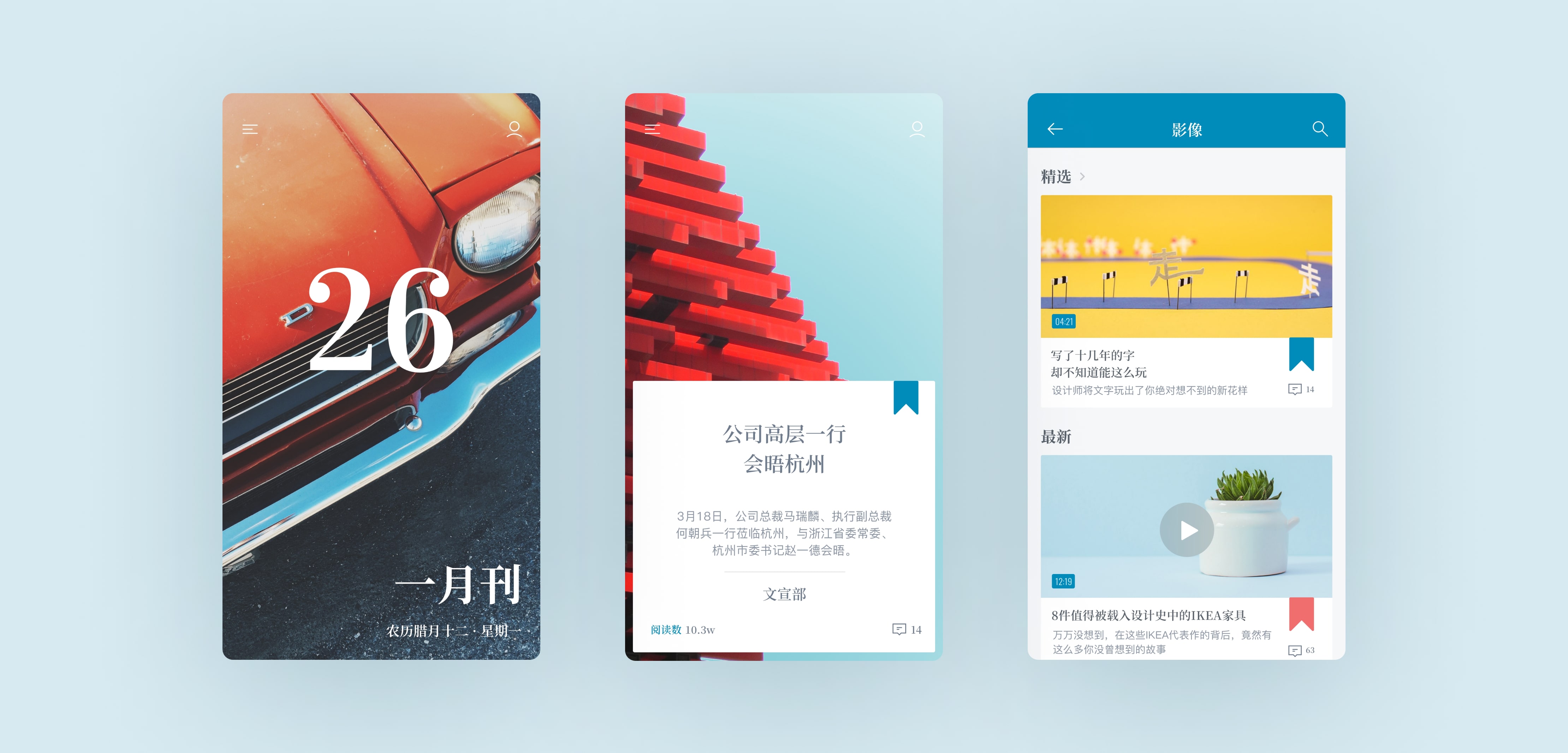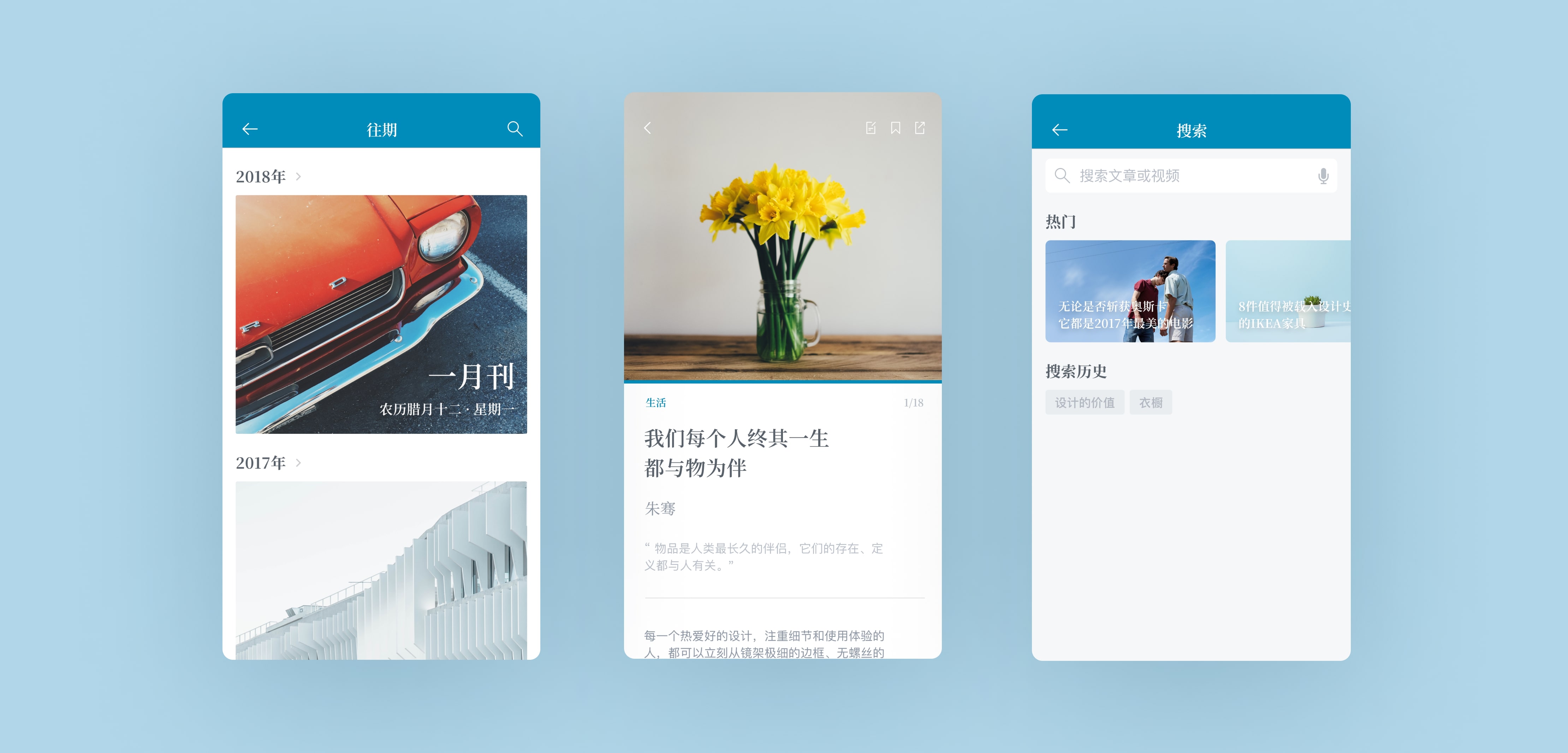 We decided to design the app by incorporating the reading characteristics of traditional journals, focusing on user habits and using swipe page-turning as the primary interaction method to closely match natural operation habits. This design allows us to remove the bottom tab bar to expand the content viewing area, achieving a more immersive visual experience. The app adopts Ford's signature blue color, adjusting its saturation to create a soft and comfortable color scheme to support long-term reading. To match the overall visual style, we created a set of simple linear icons and used two different fonts, with a serif font for titles to enhance the app's traditional journal feel. The overall design aims to provide users with the texture of a physical publication and a comfortable reading experience.