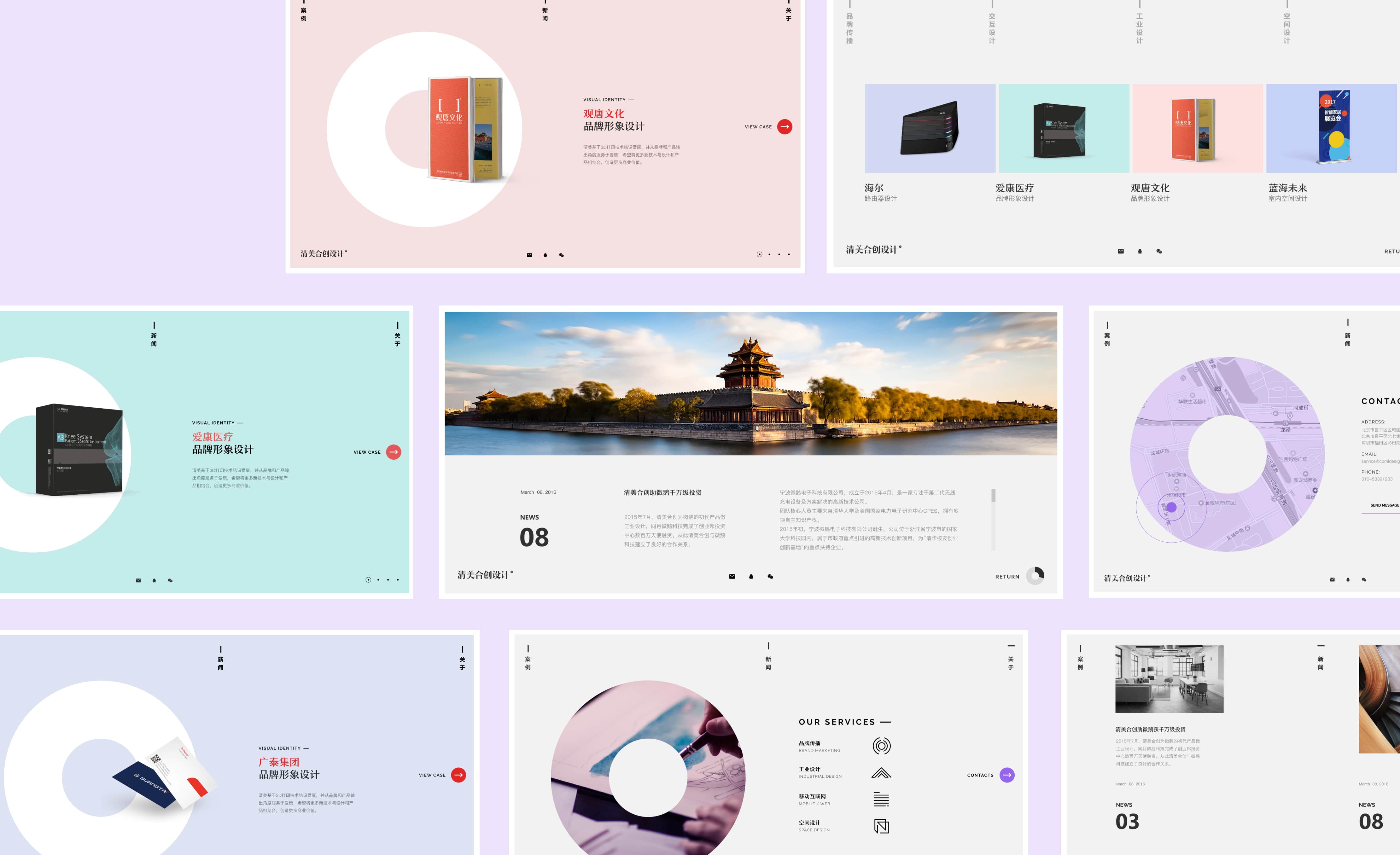 最终的成品在保持极简主义风格的前提下,融合并传达了工作室的品牌概念。新网站大量使用了圆形和边框构建的视觉效果,清晰地传递工作室的设计理念和核心价值,为访客提供了一种直观且富有吸引力的浏览体验。