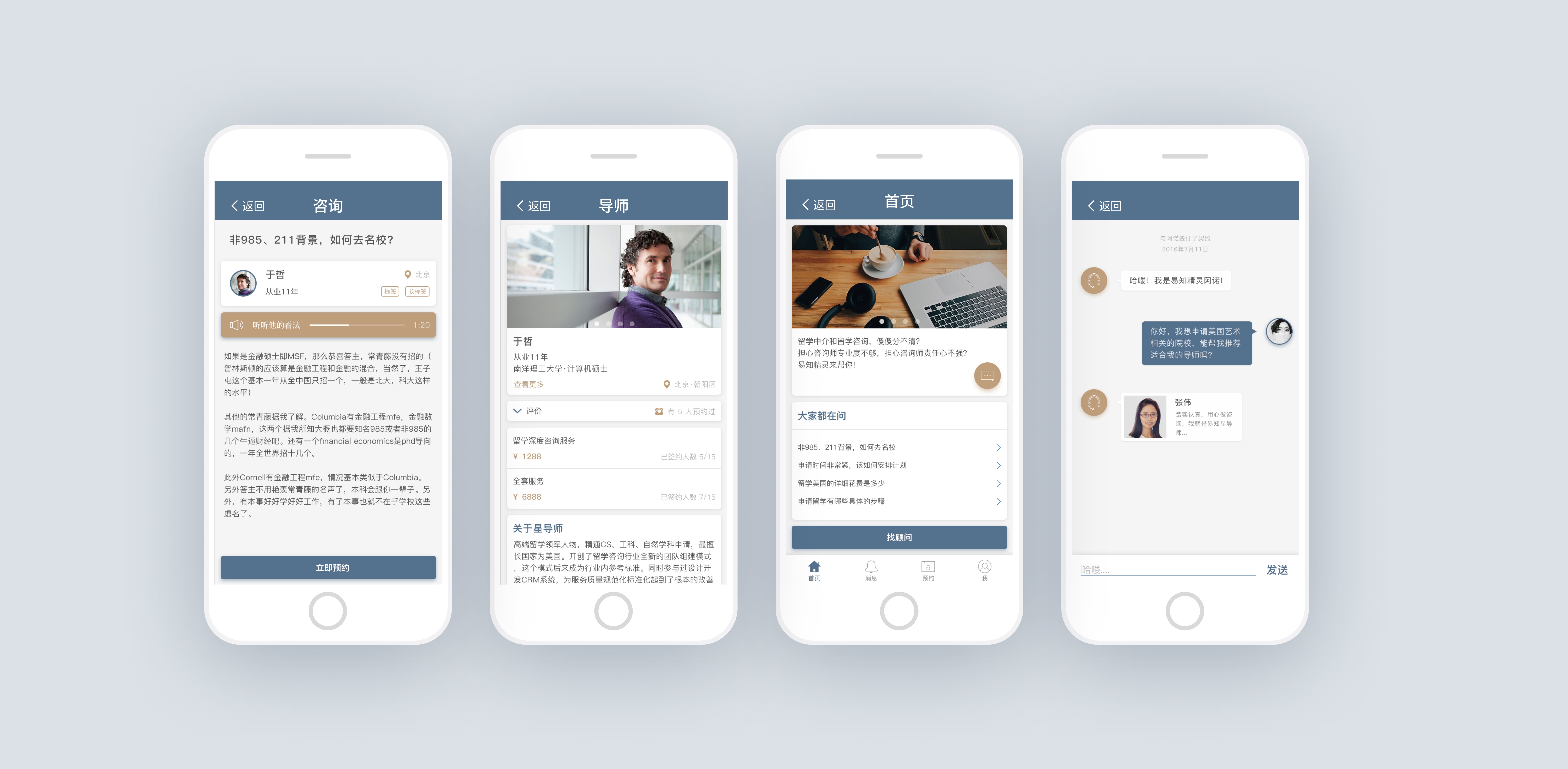为了实现这一目标,我们在客户与独立咨询师之间建立了一个高效的交流平台。在服务开始前,我们通过详细的调查问卷收集用户的具体信息,以便精准匹配最合适的独立咨询师。用户可以通过易知助手快速预约咨询师,并在服务结束后留下评价。这些反馈不仅帮助未来用户找到更合适的咨询师,还能够不断提升服务质量。 在设计方面,我采用了具有品质感的灰色和浅棕色的搭配,利用清晰的界面布局和精致的设计元素,突出项目的中立性和品质感。