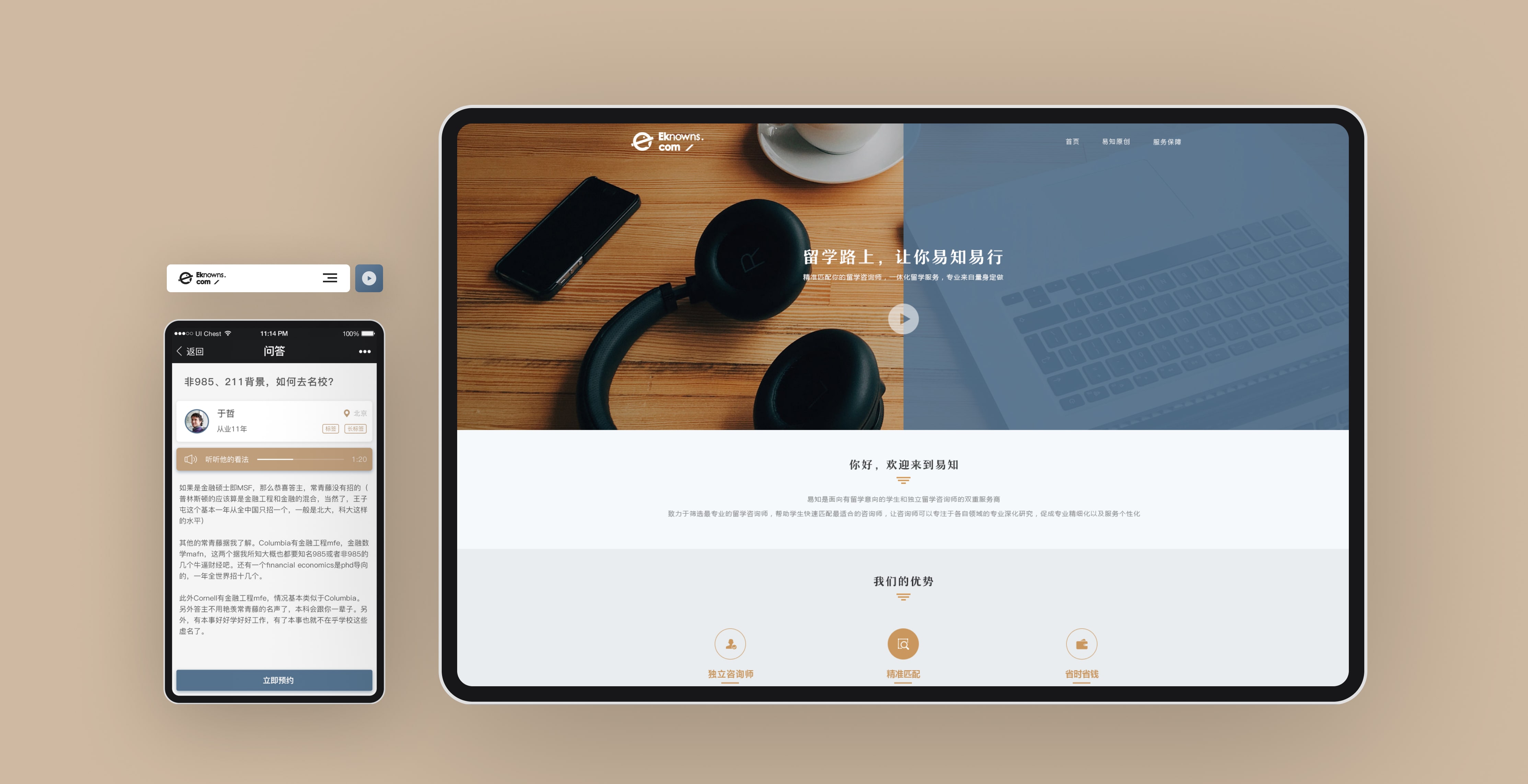 该项目分为多个部分,而我的职责范围涵盖了从后台管理端到客户微信端的所有视觉和交互设计工作。其中,官方网站和微信客户端是设计的重点。我们面临的一个主要挑战是如何在设计中传达易知项目的高品质感,因为我们的目标客户定位于高端人群。这不仅要求设计风格必须简洁、专业,还要确保用户在使用过程中能够感受到优质服务的精致体验。