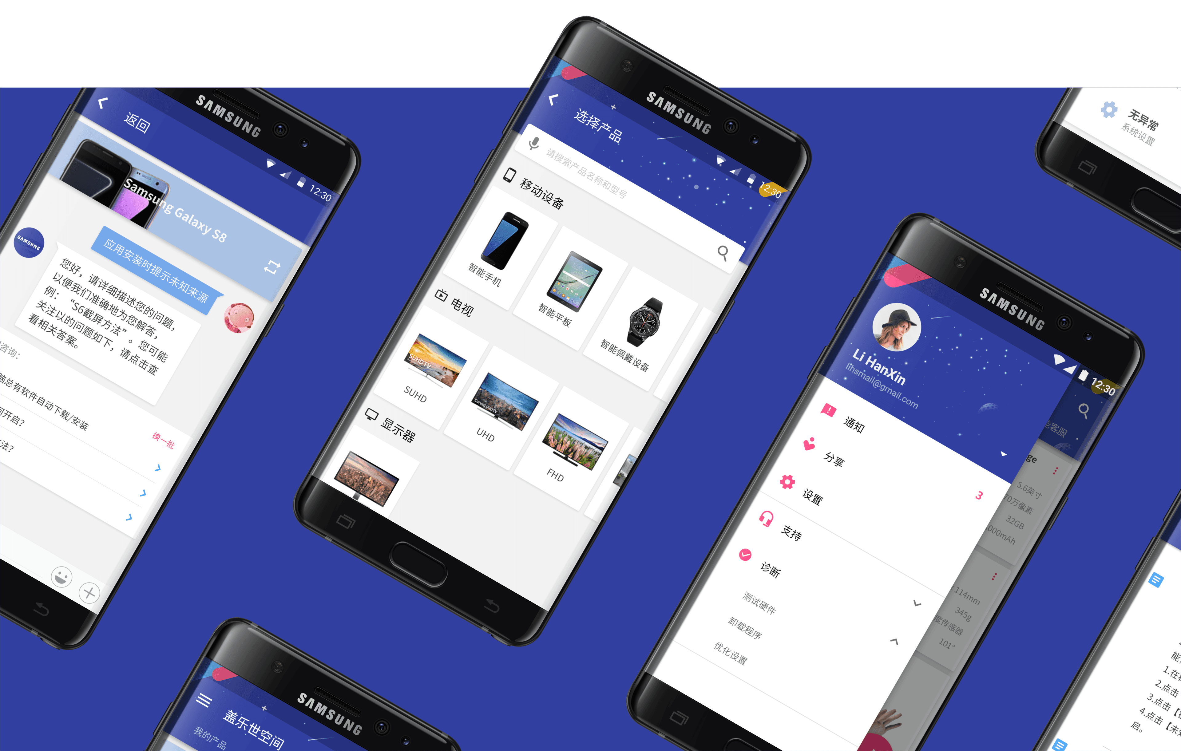 原本的Samsung Care应用由多个不同板块组成,且后续的更新没有承袭统一的视觉语言。这导致不同板块和功能之间缺乏一致的视觉语言和操作逻辑,用户往往很难在应用中找到所需的设备及功能。具体挑战包括信息展现结构混乱,用户难以导航和找到所需功能。视觉设计不统一,缺乏整体性和品牌一致性。用户体验不佳,使用过程繁琐且不直观。