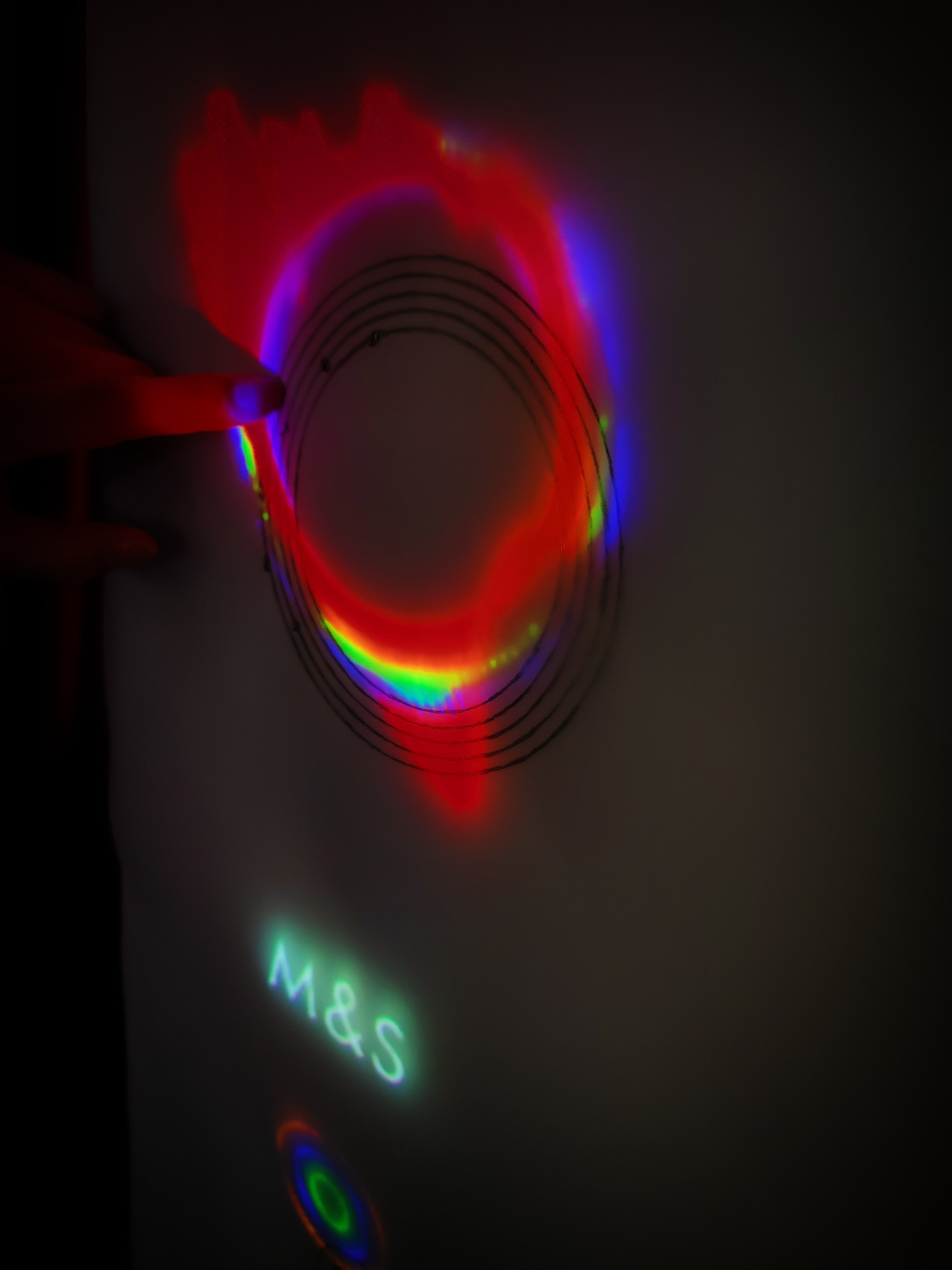 我们先通过手绘的方式做了简单的可视化尝试,以确定该方向的可行性。最终我们决定使用采用投影仪+触摸传感器来构建动态交互,我们进一步扩展了原型,在其基础上添加了交互动画,并决定让观众通过触摸多个不同的圆圈来DIY理想的购物氛围,从而产生更多的可能性。
