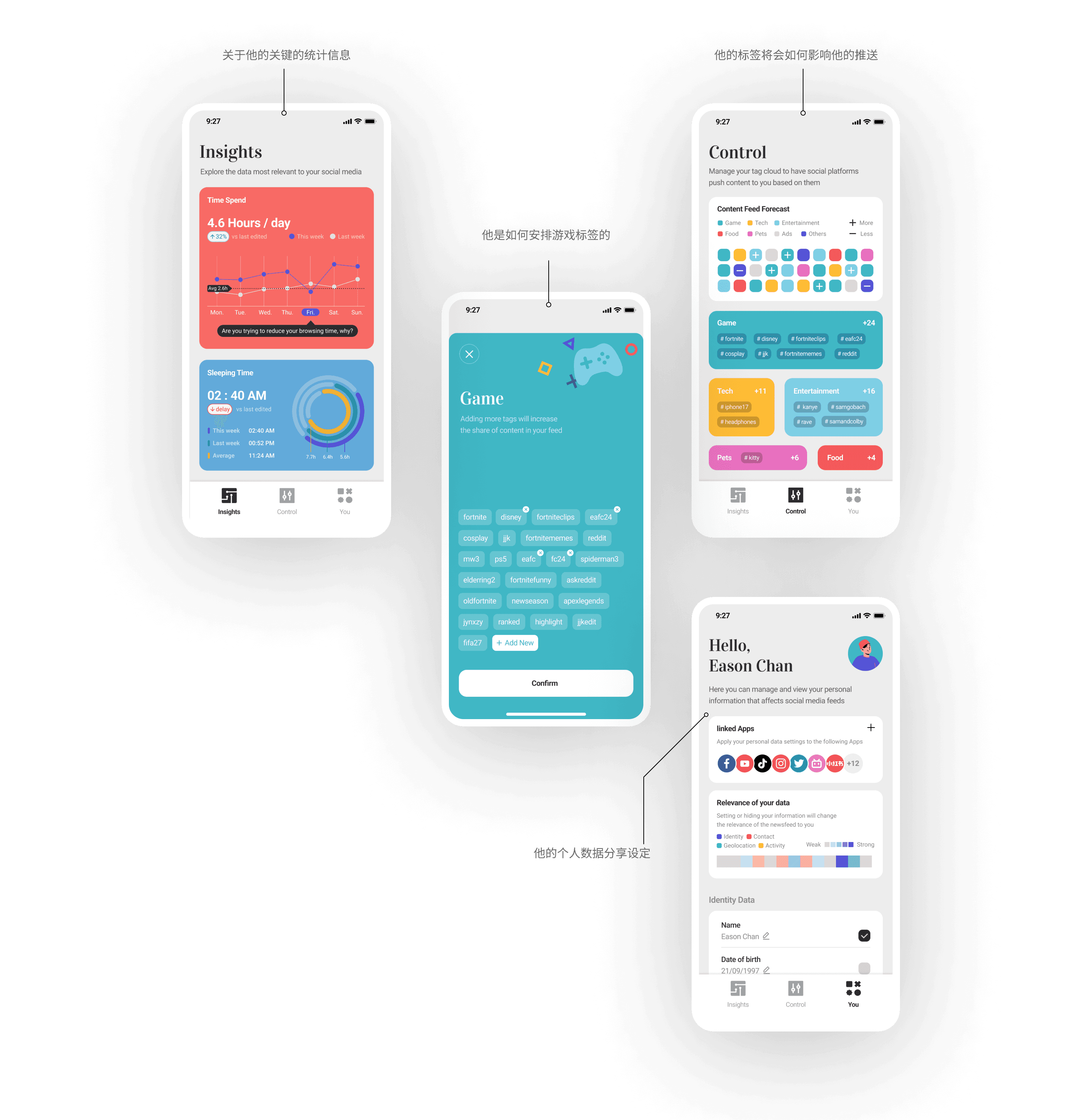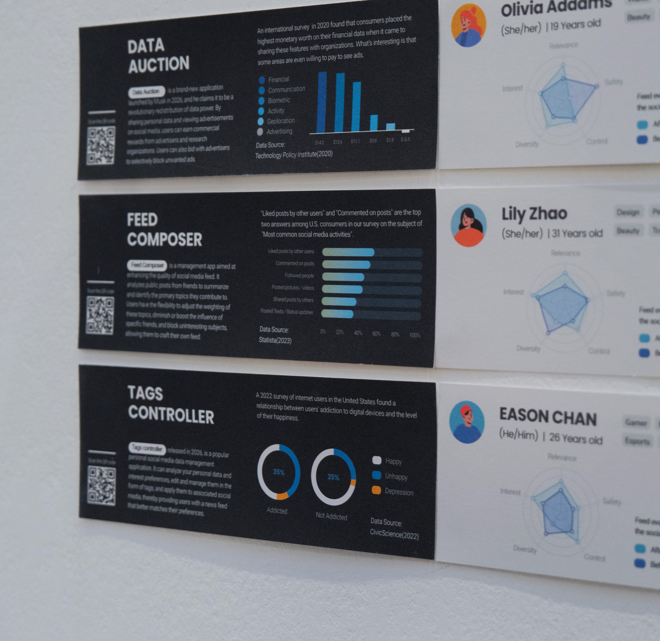 The News Source Push Data Controller is a series of near-future applications created with a focus on speculative design. The purpose is to use data visualization to illustrate the social relationship problems that may arise from the expansion of personal management rights, helping the public recognize this contradiction and sparking discussion and reflection.